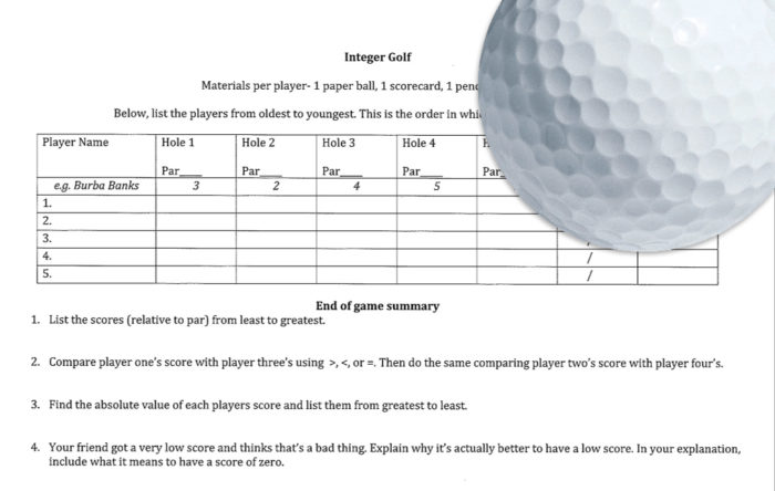 Students will use positive and negative quantitie to represent scores in a game of golf.
